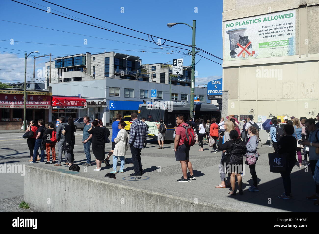 People Line Up In The Bus Stop 99 B Line In Vancouver Canada Stock Photo Alamy